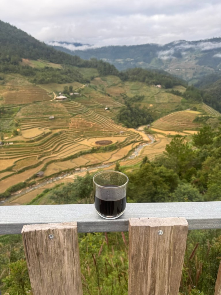 I woke at 6am in the wooden homestay in Mù Cang Chải and stepped out to enjoy a coffee while taking in the view. The plan for the day was to explore the local area in the morning – there were a few recommended viewing spots I wanted to reach by motorbike – and then set off for Vũ Linh and Thác Bà Lake, a recommended stop on the way back to Hanoi.